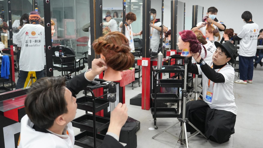 这是本次比赛最鲜明的特色——竞赛标准与内容设计紧密对标世界技能大赛。据大赛裁判长介绍:“看上去实操只有盘发一个项目,实则综合考察了编发、造型、色彩衔接与脸型比例协调等多重技能。”高标准的比赛设定,对绝大多数习惯于日常商业发型的选手而言,是一次不小的挑战与飞跃,从业20多年的参赛选手也说自己“昨晚练到了深更半夜” 。