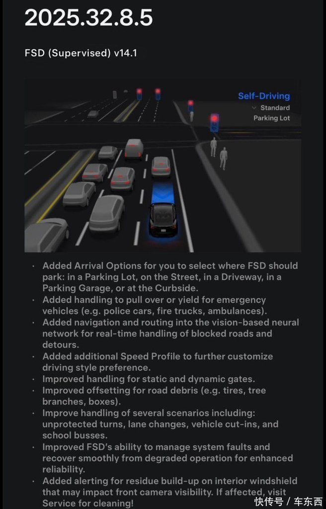 此外,FSD V14.1还对一些功能进行了优化,比如优化对静态和动态路障的处理,优化道路杂物避让,优化多项场景, 增强系统故障管理与恢复能力。